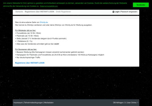 Shimly.de bietet: 2 Paidsurfs, Paidbanner, Paidlinks und eine Paidmail-Inbox.